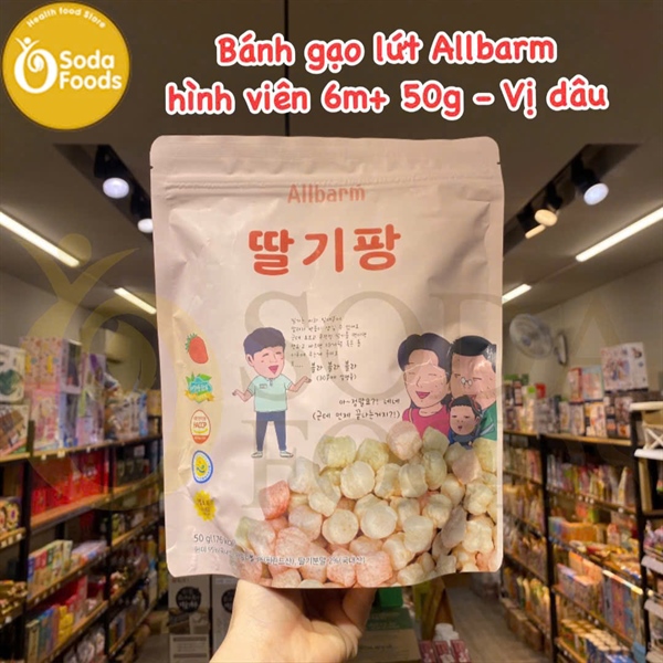 Bánh gạo lứt Allbarm hình viên 6M+ 50g - vị dâu