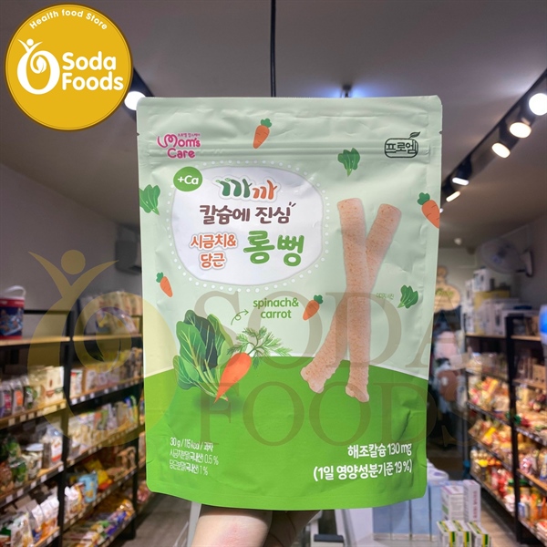 Bánh gạo lứt canxi thanh dài Mom's Care (6m+) - rau bina,cà rốt