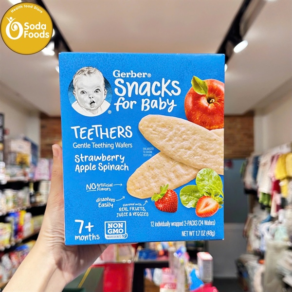 Bánh gạo miếng Gerber 7m+ (48g) - táo, dâu, rau bina