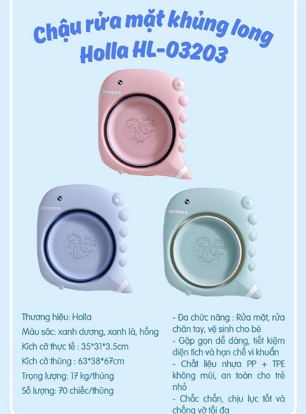 Chậu rửa mặt gấp gọn Khủng Long Xanh Dương