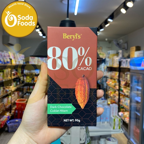 Thanh Dark Chocolate Beryl's không đường 90g - 80% cacao