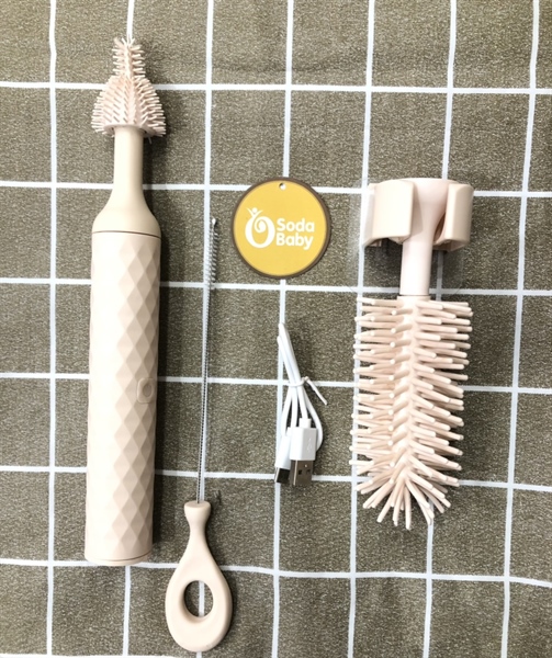 Cọ rửa bình 360 điện - Kem có móc treo