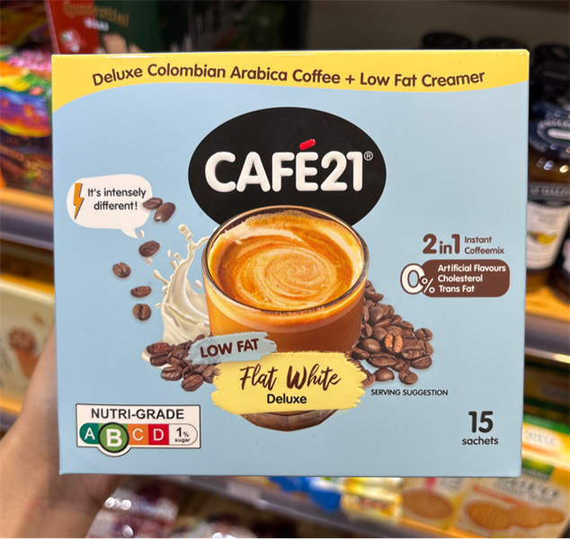 Cà phê hòa tan FLAT WHITE DELUXE ít béo hiệu CAFÉ 21