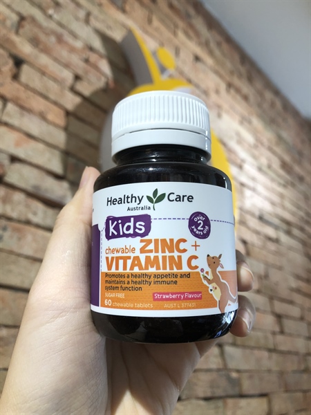 Viên nhai bổ sung kẽm Healthy Care Zinc + Vitamin C cho bé 2y+
